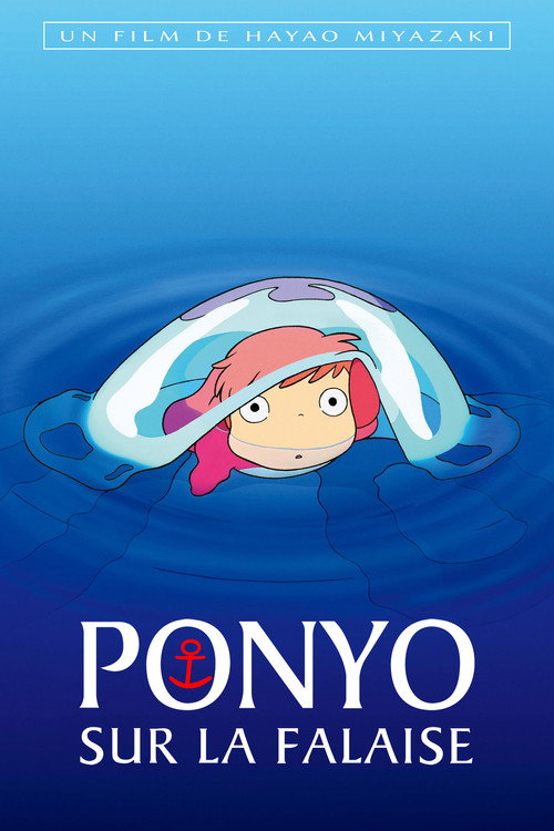 Sommaire : Le petit Sosuke, cinq ans, habite un village construit au sommet d'une falaise qui surplombe la Mer Intérieure. Un beau matin, alors qu'il joue sur la plage en contrebas, il découvre une petite fille poisson rouge nommée Ponyo, piégée dans un pot de confiture. Sosuke la sauve, et décide de la garder avec lui dans un seau. Ponyo est aussi fascinée par Sosuke que ce dernier l'est par elle. Le petit garçon lui promet de la protéger et de s'occuper d'elle, mais le père de Ponyo, Fujimoto - un sorcier autrefois humain qui vit tout au fond de la mer - la force à revenir avec lui dans les profondeurs. Bien décidée à devenir humaine, Ponyo s'échappe pour retrouver Sosuke. Mais avant de prendre la fuite, elle répand l'élixir magique de Fujimoto, l'Eau de la Vie, dans l'océan. Le niveau de la mer s'élève, et les sœurs de Ponyo sont transformées en vagues gigantesques qui montent jusqu'à la maison de Sosuke sur la falaise, et engloutissent le village...